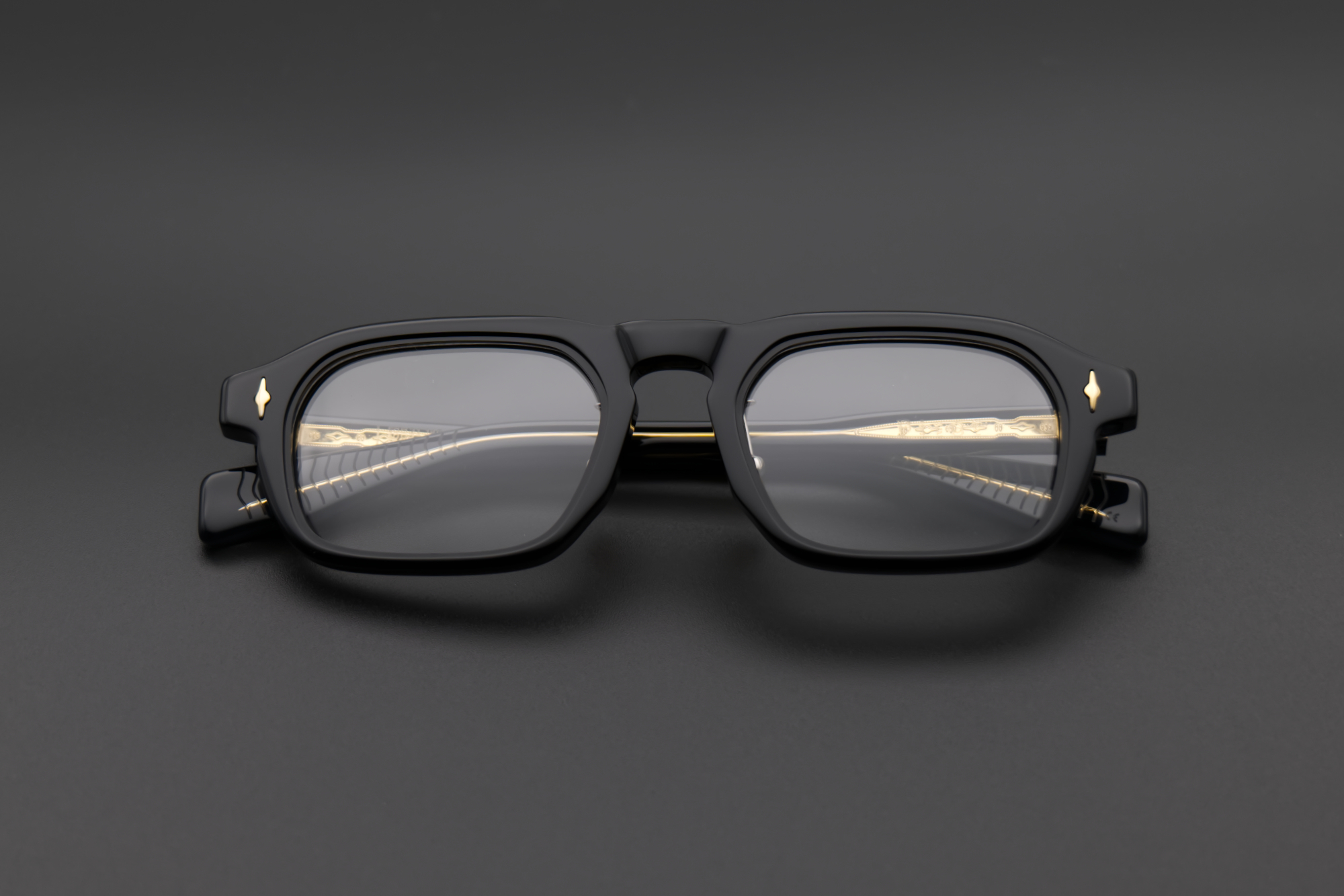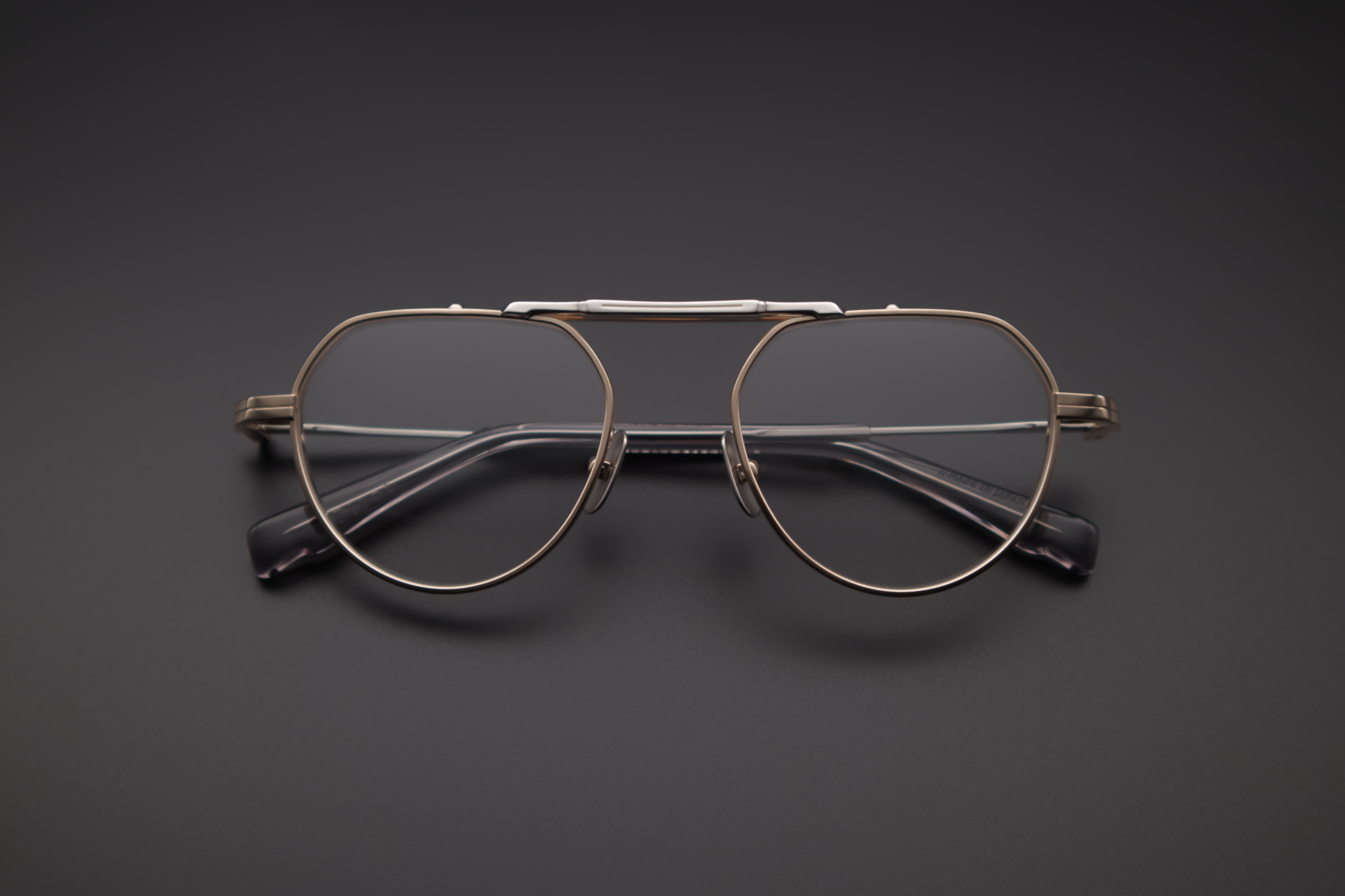 SCHLUMBERGERAは前後に異なるワタリを採用したダブルバースタイル。パーツの随所にエッジを効かせた立体的なフロントと、対照的な均一幅のテンプルが織りなすメリハリから締まりのあるアイウェアを演出する。